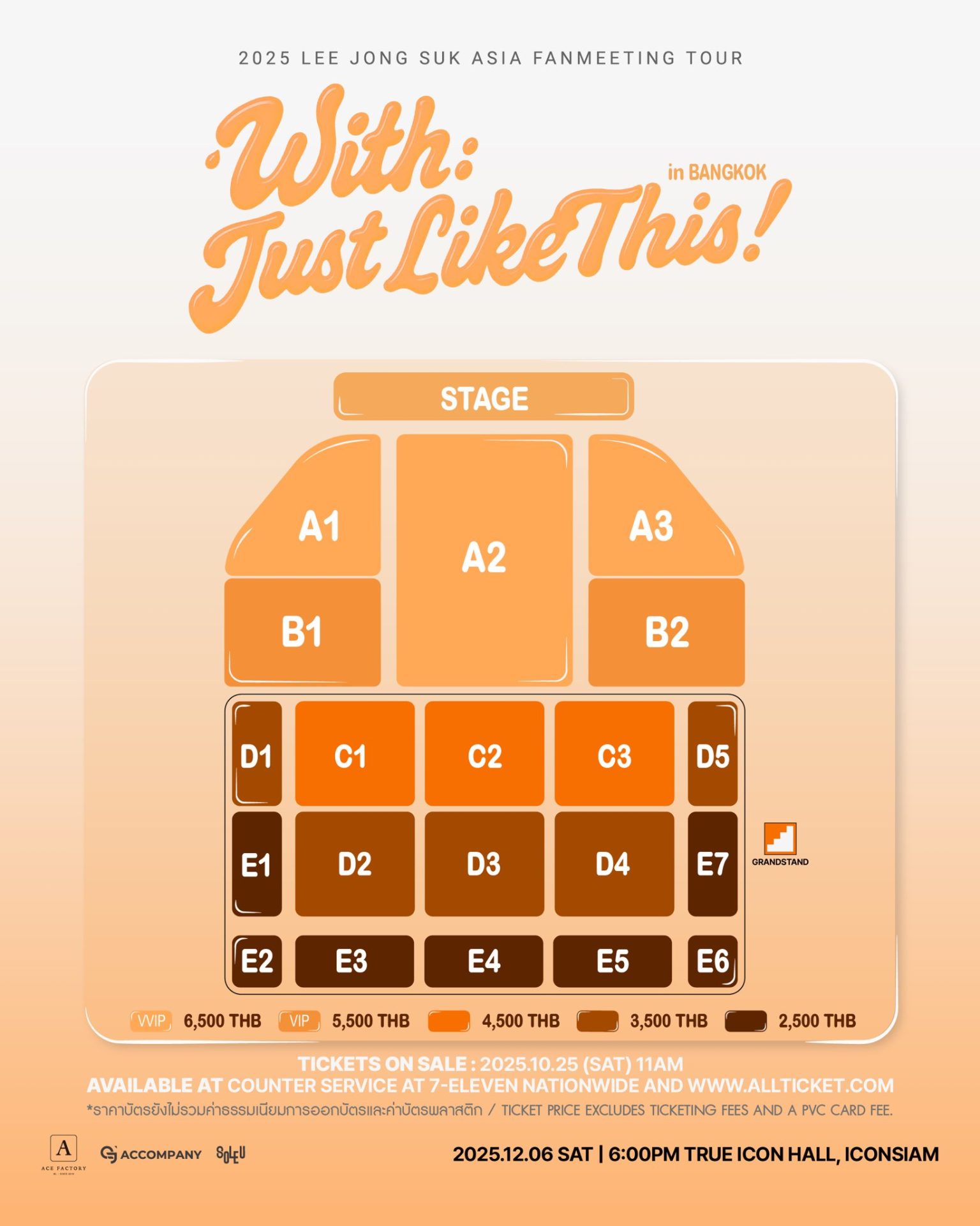 SOLE U ENTERTAIN (โซลยูว์ เอ็นเตอร์เทน) ผู้จัดมากประสบการณ์ เตรียมสร้างเซอร์ไพรส์ครั้งใหม่ คว้า “อีจงซอก” นักแสดงหนุ่มซูเปอร์สตาร์เกาหลีใต้ บินลัดฟ้าคัมแบ็คประเทศไทยจัดงานแฟนมีตติ้งสุดเอ็กซ์คลูซีฟที่แฟน ๆ รอคอย “2025 LEE JONG SUK ASIA FANMEETING TOUR [With : Just Like This] in BANGKOK” อีจงซอกพร้อมแล้วที่จะมอบโมเมนต์สุดฟิน สุดอิน จัดเต็มทุกวินาที ในวันเสาร์ที่ 6 ธันวาคม 2568 เวลา 18.00 น. ณ TRUE ICON HALL, 7th FLOOR, ICONSIAM เหล่าชาวด้อม With ไม่ควรพลาด!