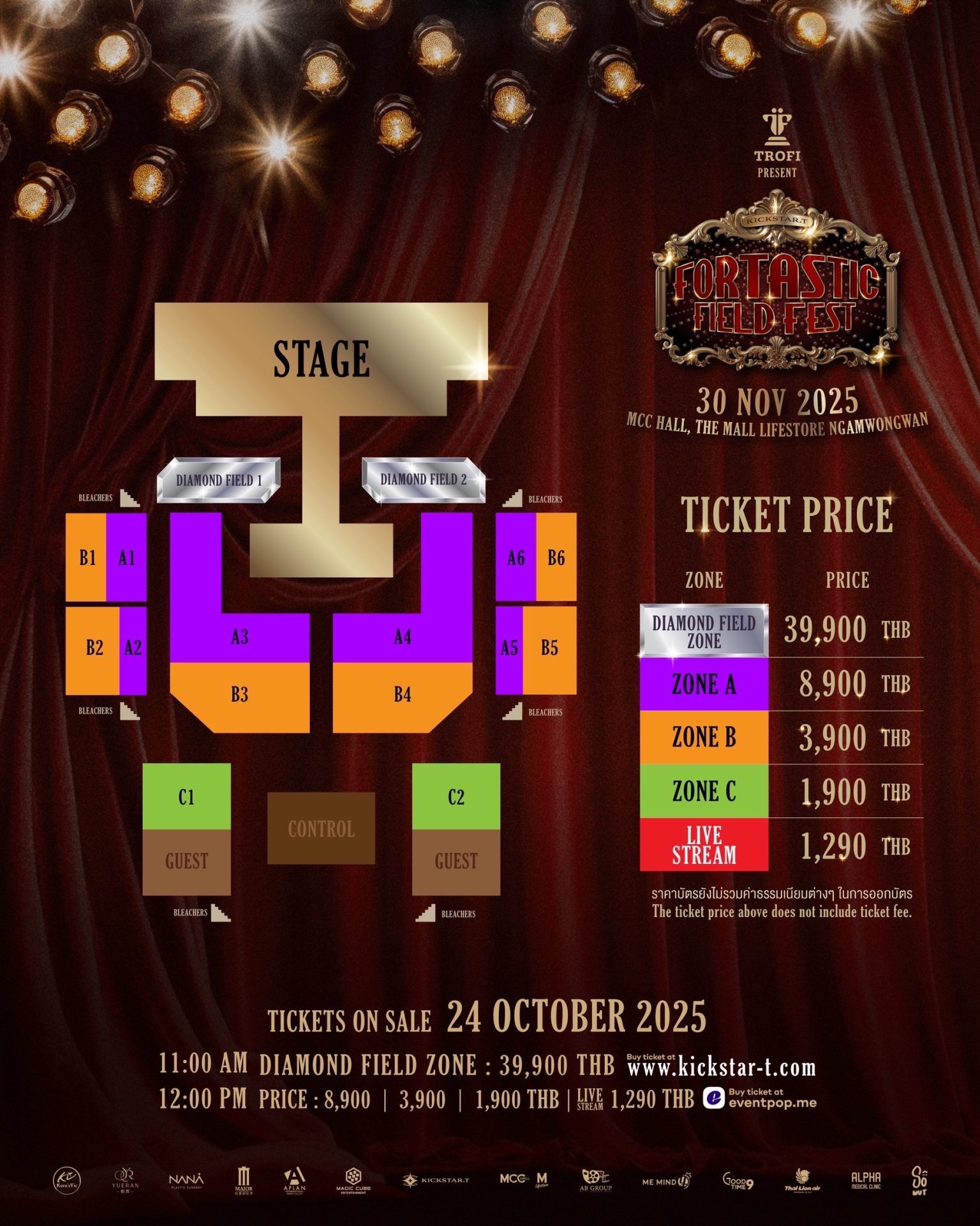 เวลา 12:00 น. เปิดขาย Zone A 8,900 บาท, Zone B 3,900 บาท, Zone C 1,900 บาท