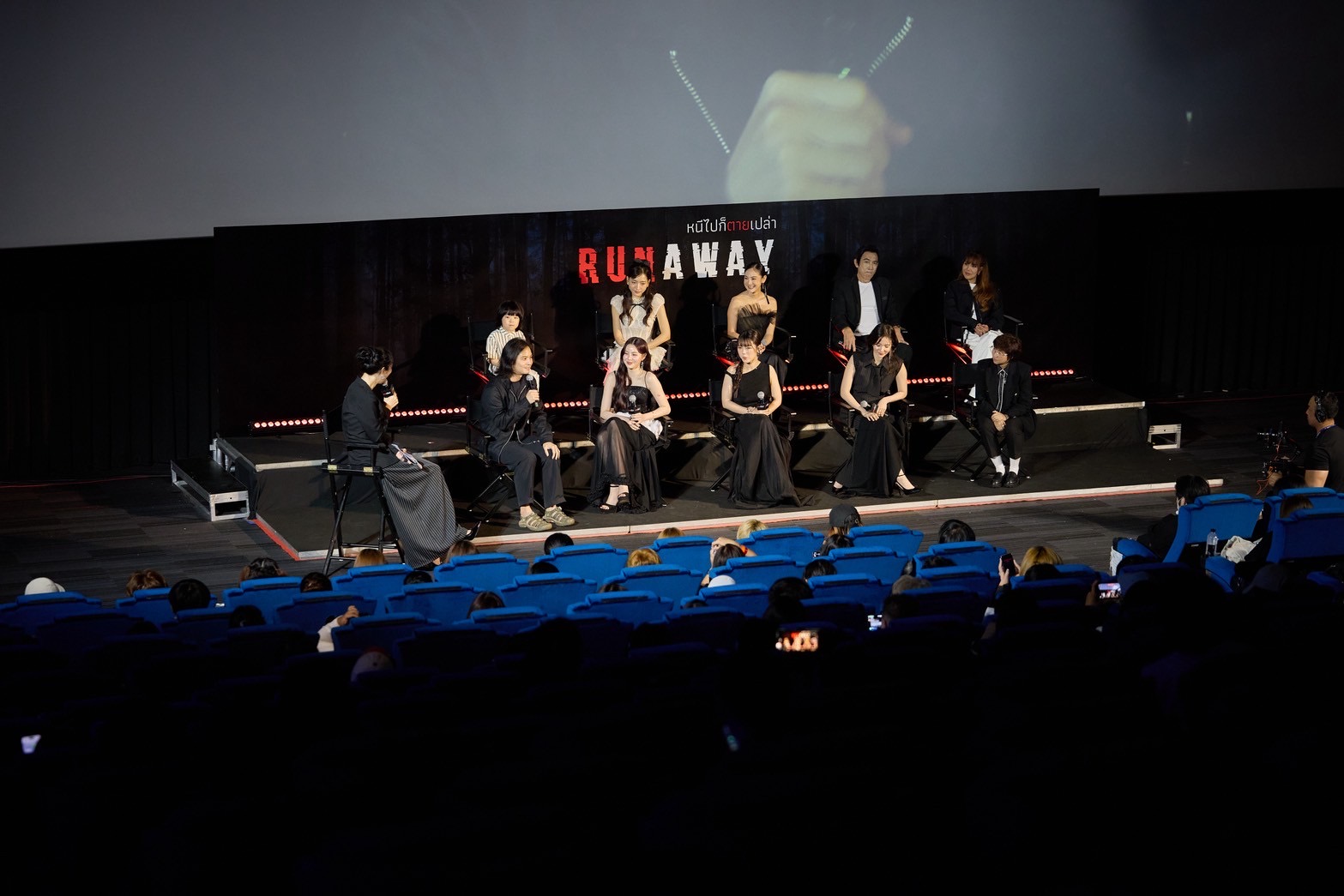 เปิดฉายตอนแรกอย่างเป็นทางการ ซีรีส์แซฟฟิกสยองขวัญเรื่องใหม่ “RUNAWAY หนีไปก็ตายเปล่า” โดย Grow Entertainment ร่วมกับ บ้านฉันProduction บทประพันธ์จาก zonlicht ได้จัดกิจกรรม “RUNAWAY TOGETHER” ชวนทุกคนมา “หนี” ไปด้วยกัน! บรรยากาศภายในงานสุดเข้มข้น ที่ผสมผสานความดาร์กและความหลอนชวนติดตาม นำทีมโดย พงศภัค ฟักเขียว CEO สังกัด Grow Entertainment, อทิติ ชาญเลขา กรรมการผู้จัดการ บ้านฉันProduction, โอ๊ต-วทัญญู อิงควิวัฒน์ ผู้กำกับสายสยองขวัญพร้อมด้วยเหล่านักแสดงนำอย่าง “มิวสิค-แพรวา สุธรรมพงษ์”, “ปลายฟ้า ศิระอาชา”, “เปียโน-ณิชาพัชร์ น้ำทรัพย์อนันต์, “ต้น-ศรัณญ์ อนันตะเศรษฐกูล”, “น็อต-ณัฐสิทธิ์ ปัญญางาม”, “นิว-ปทิตตา อัธยาตมวิทยา” ร่วมด้วย “ต้อม-รชนีกร พันธุ์มณี”, “โดโด้-ยุทธพิชัย ชาญเลขา”, “แอม-ณัฏฐา ชาญเลขา” และ “ครูน้ำฝน ภักดี” ท่ามกลางแฟนๆ ที่มาร่วมเชียร์และให้กำลังใจกันอย่างเนืองแน่น