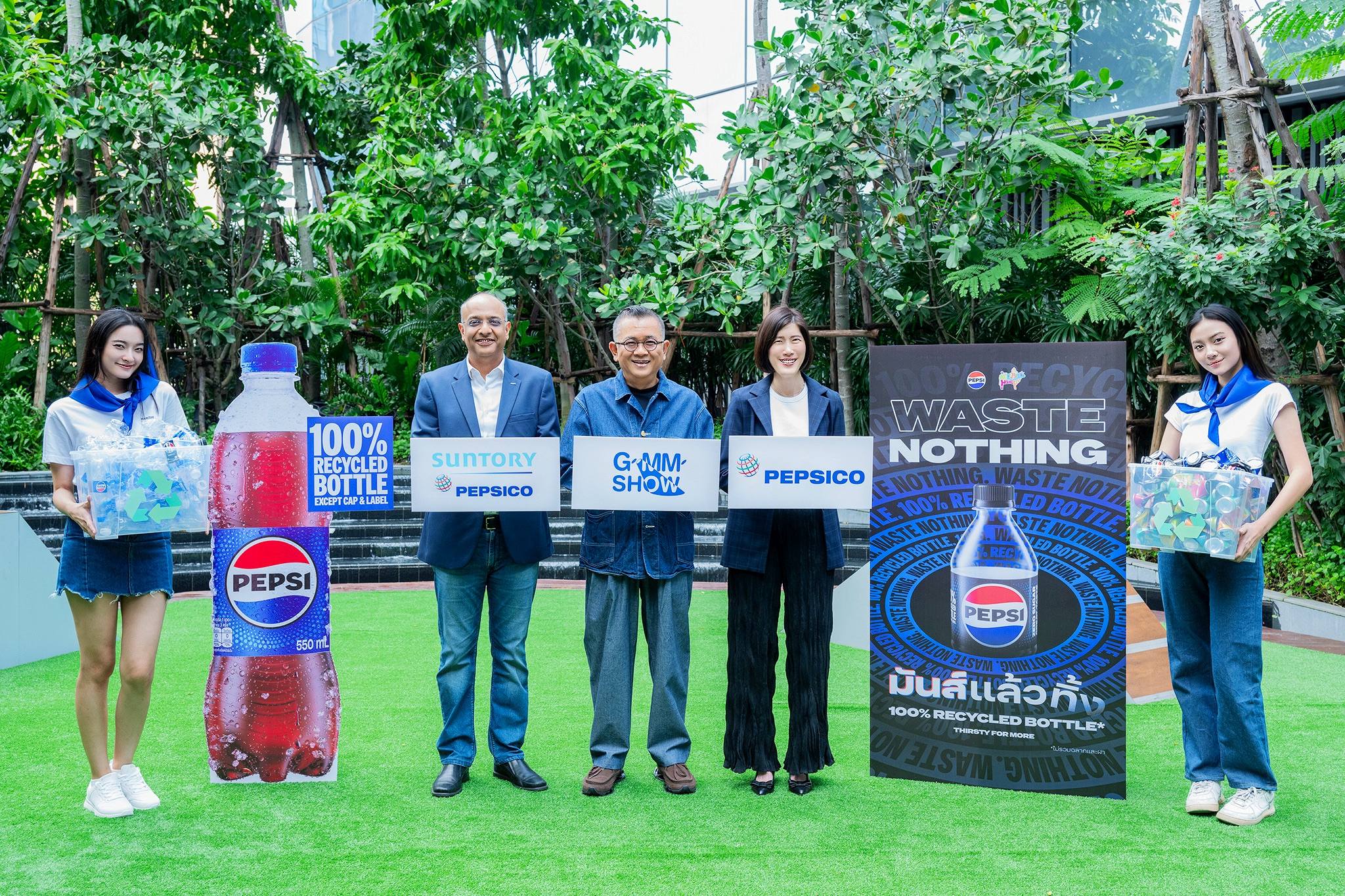 แคมเปญ “Waste Nothing – มันส์ แล้ว ทิ้ง” เป็นส่วนหนึ่งของการจัดการบรรจุภัณฑ์อย่างยั่งยืนของซันโทรี่ เป๊ปซี่โค ประเทศไทย และ เป๊ปซี่โค ประเทศไทย ผ่านเทศกาลดนตรีและกิจกรรมที่แบรนด์เป๊ปซี่สนับสนุน (Event-Based Packaging Sustainability) โดยมีเป้าหมายให้บรรจุภัณฑ์ใช้แล้วภายในงานถูกคัดแยกและนำกลับมาใช้ประโยชน์ โดยเฉพาะขวด PET ใสไม่มีสี ที่สามารถเข้าสู่กระบวนการ “Bottle-to-Bottle Recycling” เพื่อหมุนเวียนกลับมาผลิตเป็นขวดใหม่ และกระป๋องอะลูมิเนียม ที่เข้าสู่กระบวนการ “Can-to-Can Recycling” เพื่อผลิตเป็นกระป๋องใหม่ได้อีกครั้ง พร้อมกันนี้ ยังส่งเสริมให้ผู้เข้าร่วมงานมีส่วนร่วมในการคัดแยกขยะด้วยตนเอง เพื่อสร้างความเข้าใจและเห็นคุณค่าของการคัดแยกขยะตั้งแต่ต้นทาง ตอกย้ำการดำเนินธุรกิจควบคู่กับการดูแลสังคมและสิ่งแวดล้อมตามค่านิยมองค์กร “การเติบโตอย่างยั่งยืน” (Growing for Good) ของซันโทรี่ เป๊ปซี่โค ประเทศไทย และกลยุทธ์ Pep+ (PepsiCo Positive) ซึ่งเป็นกลยุทธ์สำคัญในการดำเนินธุรกิจของเป๊ปซี่โค และเป็นกุญแจสำคัญที่ขับเคลื่อนการดำเนินธุรกิจควบคู่ไปกับความยั่งยืนในทุกมิติ ตั้งแต่การผลิต การขนส่ง จนถึงการบริโภค เพื่อสร้างผลกระทบเชิงบวกต่อผู้คนและโลกของเรา