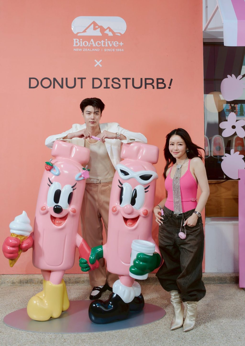 โดยครั้งนี้ คุณเมย์ – ดร. วาสนา อินทะแสง – Founder of BioActive Thailand ได้แปลงโฉมคาเฟ่ Donut Disturb ให้กลายเป็นโลกสีชมพูสุดสดใส ไปกับคาแรกเตอร์ตัวละครใหม่ “น้อง Double Gluta & Donut พร้อมผองเพื่อน” ที่ออกแบบขึ้นโดยศิลปินสุดแนว FARTBOIL – คุณ ศิวกร พิมพ์สกุลา นนท์ ด้วยคอนเซ็ป Double Delicious พร้อมเปิดตัวเมนูคอลแลปพิเศษ ที่ผสมผสาน ความอร่อยของโดนัท และ ความออร่าจาก Gluta Drink อย่างลงตัว โดยมี คุณ ณรงค์ฤทธิ์ ศรีตลานนท์ และ เฉลิมพล อัครภิญโญกุล – Founder of Donut Disturb ได้รังสรรค์ เมนูโดนัท และเครื่องดื่มที่ได้แรงบัลดาลใจมาจาก “Gluta Drop Drink” เพิ่มความอร่อย และได้ผิวออร่า เมนูโดนัท Hokkaido Milk & BioActive, Strawberry Cream, และ Lychee Jam และเสริมด้วยเครื่องดื่มสำหรับผู้ชื่นชอบมัชชะ Clear Matcha & BioActive Jelly และ Strawberry Matcha Latte เรียกว่าแคมเปญนี้ คือการส่งต่อพลังความออร่า และสุขภาพดีจากภายในสู่ภายนอกอย่างแท้จริง ภายในงานวันเปิดแคมเปญวันแรก ยังมี สองนักแสดง แม็กกี้ – รชต พิเชฐโชติ ,เซฟ ไซสวัสดิ์ ,ศิลปิน วง CIR*CRL อย่าง แซม พฤติชัย รวยฟูพันธ์ และ เบ็น ภัทรกิจ ตั้งมงคลกิจการ และสาวสวย ยี่หวา – ปรียากานต์ ใจกันทะ และ เบนซ์ – ข้าวขวัญ มาร่วมเช็คอินความคิวท์ภายในงานอีกด้วย