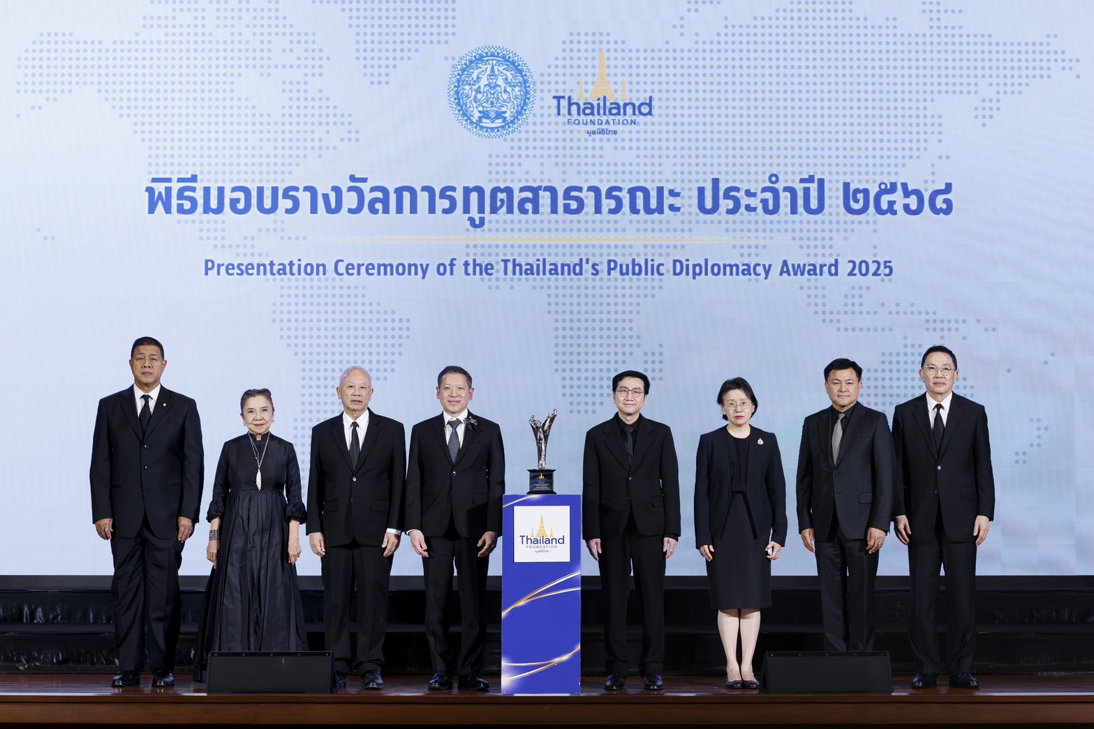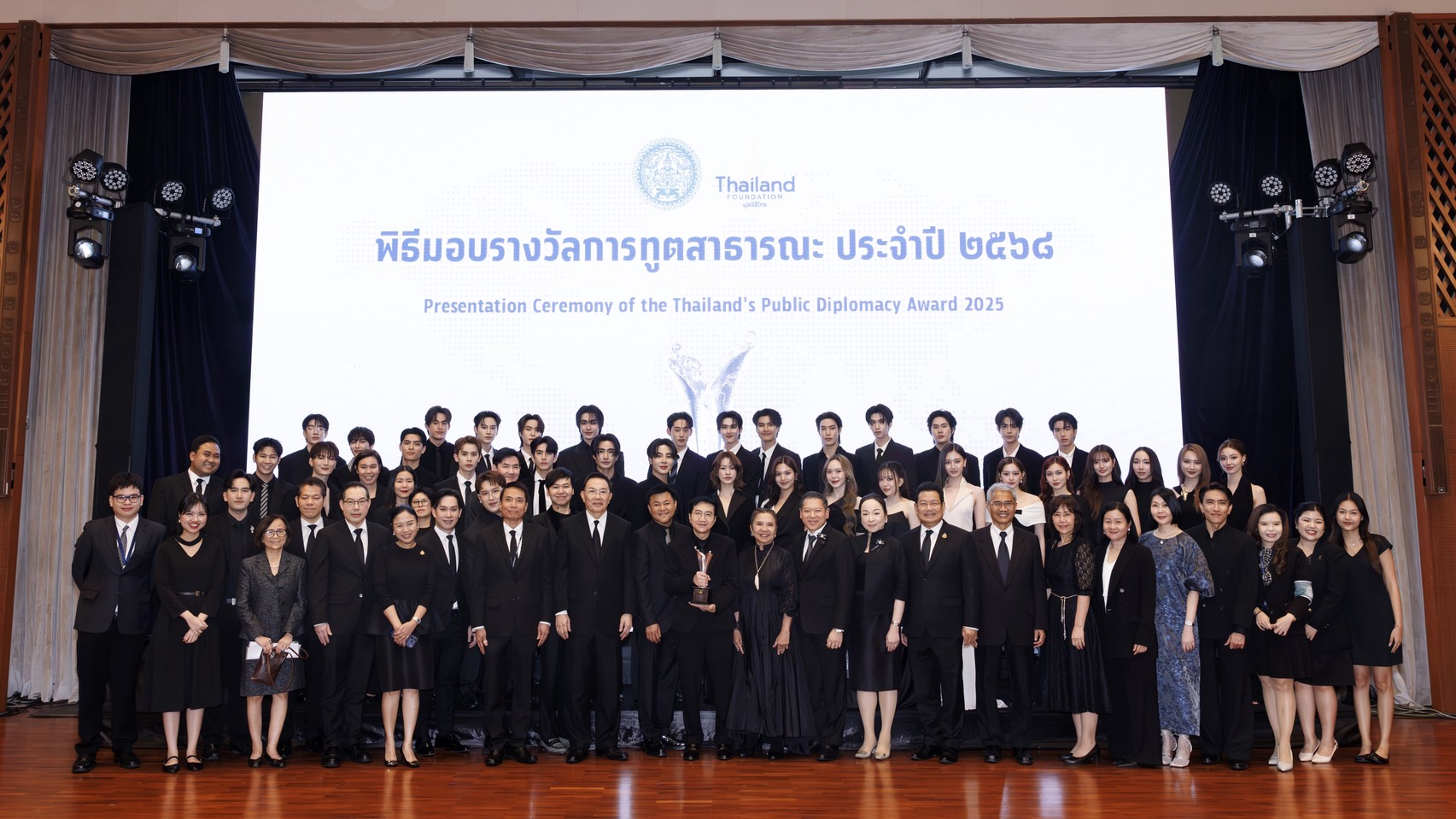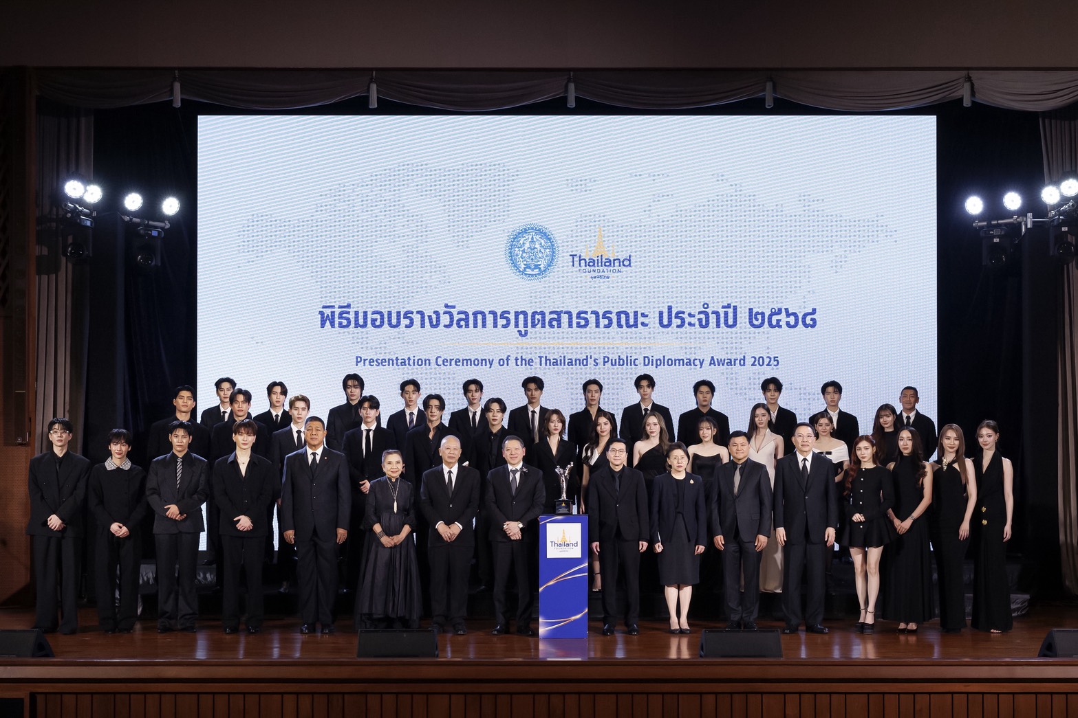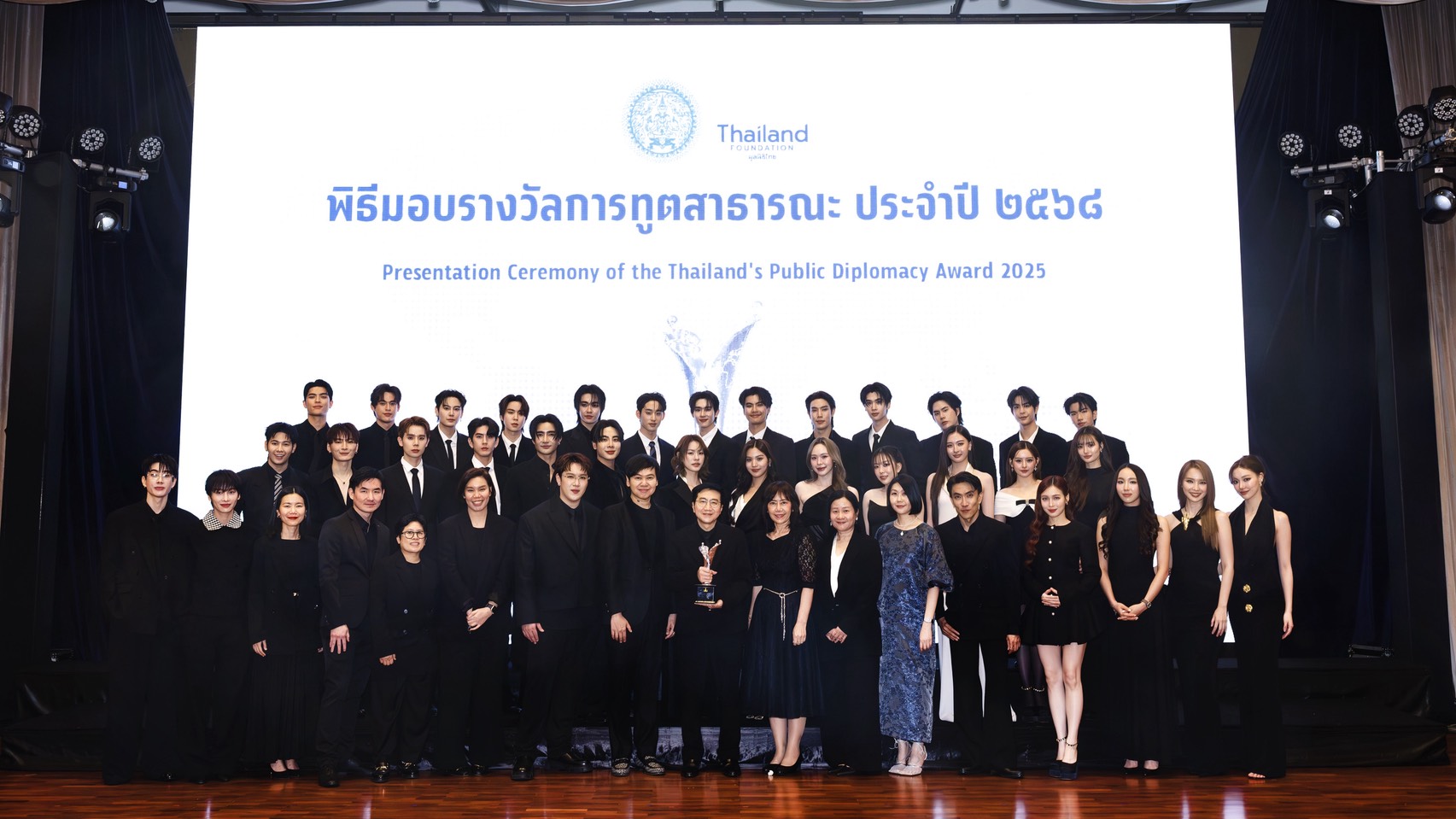 โดยมี “คุณสถาพร พานิชรักษาพงศ์” ประธานเจ้าหน้าที่บริหาร GMMTV เป็นผู้แทนรับมอบรางวัล จาก “คุณศรัณย์ เจริญสุวรรณ” เลขานุการรัฐมนตรีว่าการกระทรวงการต่างประเทศ ซึ่งมี “คุณธฤต จรุงวัฒน์” เลขาธิการมูลนิธิไทย ให้การต้อนรับ และในโอกาสนี้ “คุณสีหศักดิ์ พวงเกตุแก้ว รัฐมนตรีว่าการกระทรวงการต่างประเทศ” ได้ร่วมแสดงความยินดี พร้อมด้วย “คุณบุษบา ดาวเรือง” ประธานเจ้าหน้าที่บริหารกลุ่ม บริษัท จีเอ็มเอ็ม แกรมมี่ จำกัด (มหาชน) และ “คุณถกลเกียรติ วีรวรรณ” ประธานเจ้าหน้าที่บริหารกลุ่มบมจ. เดอะ วัน เอ็นเตอร์ไพรส์ ร่วมแสดงความยินดี ทั้งยังมีทัพนักแสดงจาก “GMMTV” อาทิ “คริส พีรวัส, สิงโต ปราชญา, ออฟ จุมพล, กัน อรรถพันธ์, เกรท สพล, จิมมี่ จิตรพล, ซี ทวินันท์, เอมี่ ทสร, บอนนี่ ภัทราภัสร์, เลิฟ ภัทรานิษฐ์, โอม ภวัต, บุ๊ค กษิดิ์เดช, ดัง ณัฎฐ์ฐชัย, ป๋อมแป๋ม นิติ, จอส เวอาห์, กวิน แคสกี้, เอิร์ท พิรพัฒน์, มิกซ์ สหภาพ, วินนี่ ธนวินท์, บูม ธราธร, เอส ศุภ, ซี เดชชาติ, คีน สุวิจักขณ์, บุ๋น นพณัฐ, เปรม วรุศ, แจน พลอยชมพู, จิงจิง ยู, อ้าย สรัลชนา, พิพลอย กัญญรัตน์, วิว เบญญาภา, มิ้ม รัตนวดี, จูน วรรณวิมล, มิวนิค นันท์นภัส” ซึ่งเป็นส่วนสำคัญของการได้รับรางวัลในครั้งนี้ ทำให้บรรยากาศในงานมีสีสันคึกคักและน่าประทับใจ เมื่อวันที่ 2 ธันวาคม 2568 ณ วิเทศสโมสร กระทรวงการต่างประเทศ ที่ผ่านมา