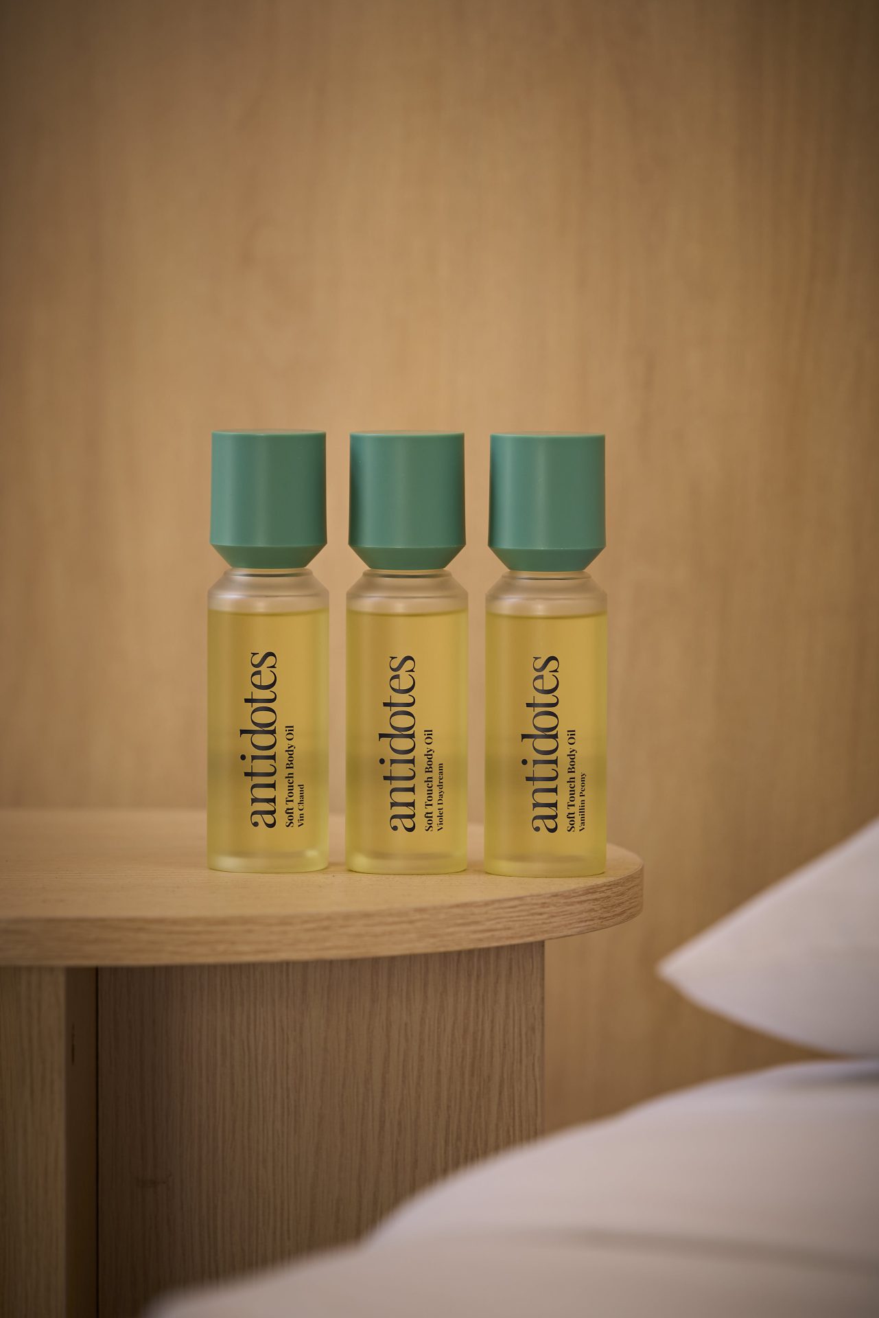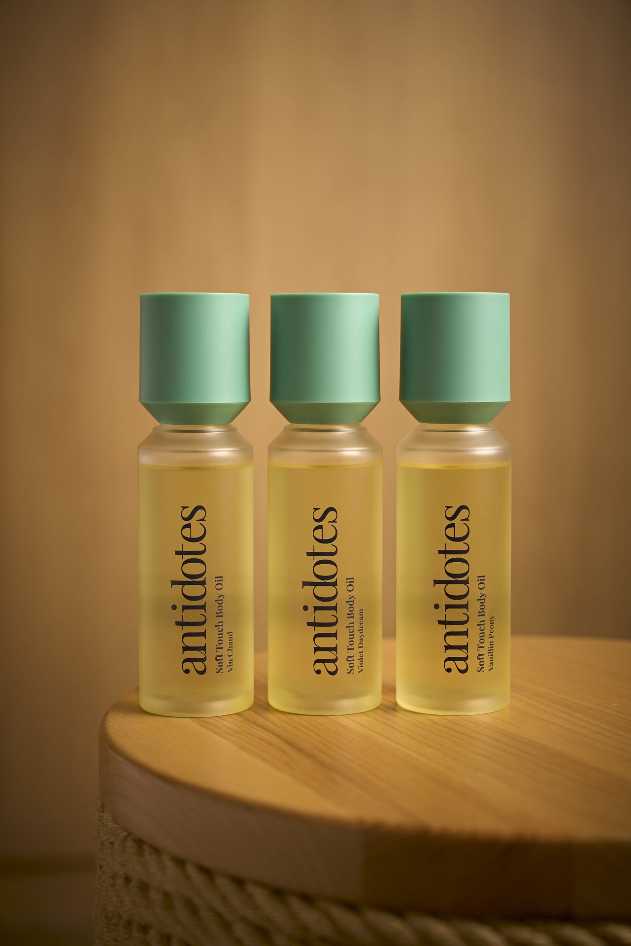 Antidotes Soft Touch Body Oil ใช้ได้ทั้งตอนเช้าและก่อนนอน ช่วยล็อกความชุ่มชื้น ให้ผิวเนียนนุ่มแบบซาติน พร้อมกลิ่นหอมชัดเจน ให้ทุกความใกล้ มั่นใจ หอมชัด สะกดทุกสัมผัส เหมาะกับทุกสภาพผิว โดยเฉพาะคนที่ใส่ใจการดูแลตัวเองหลังวันหนัก ๆ หรือชอบเติมบุคลิกก่อนออกจากบ้านในตอนเช้า ทุกกลิ่นมีให้เลือก 2 ขนาด ได้แก่ 100 ML ราคา 980 บาท และ 30 ML ราคา 350 บาท วางจำหน่ายที่ Antidotes สาขา Central World, ICONSIAM, Siam Discovery, Pop-Up Central Park และช่องทางออนไลน์ของแบรนด์ทุกช่องทาง