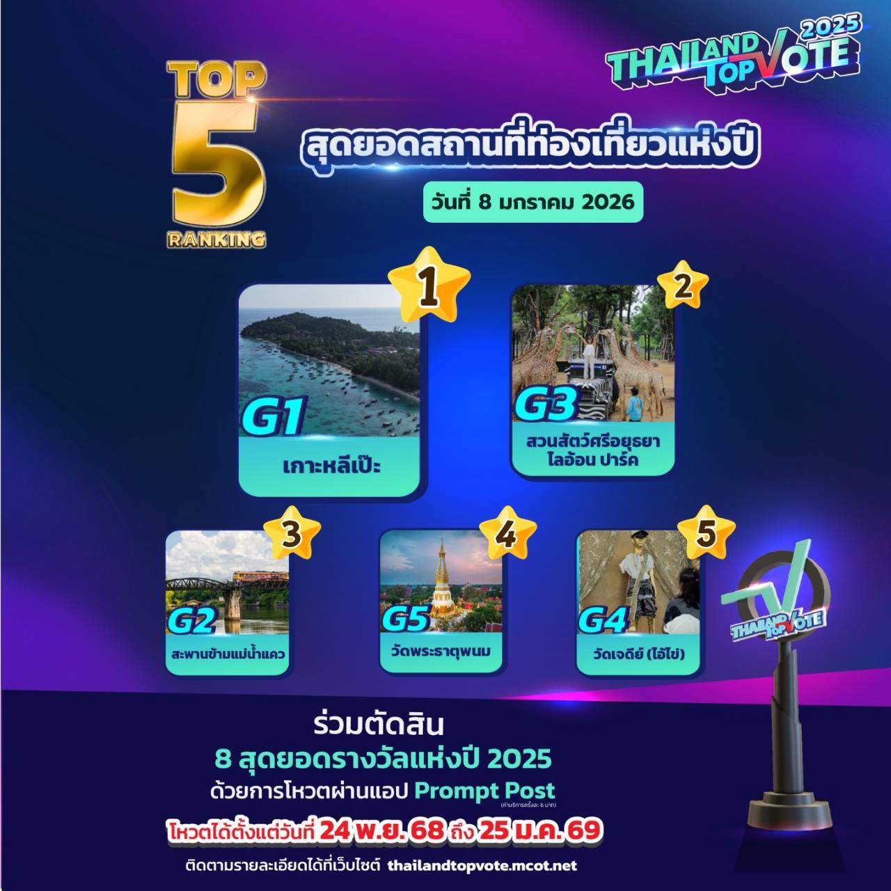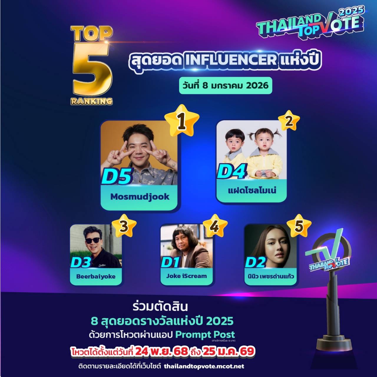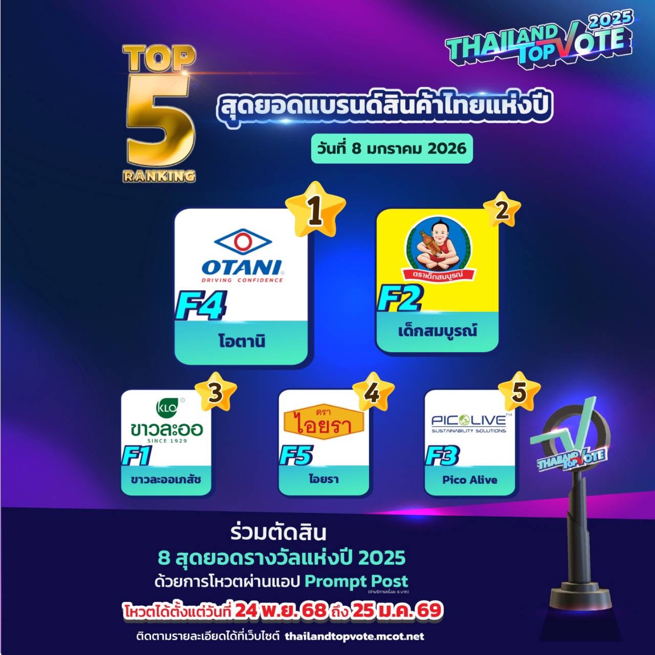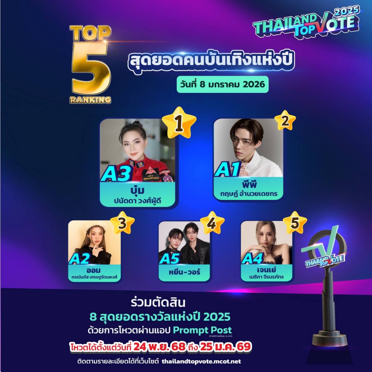 สามารถติดตามกติกาเพิ่มเติมและร่วมเป็นส่วนหนึ่งของรางวัล “Thailand Top Vote 2025” ได้ทาง https://thailandtopvote.mcot.net/ #ThailandTopVote2025 #MCOT #ช่อง9กด30 #ไปรษณีย์ไทย #PromptPost