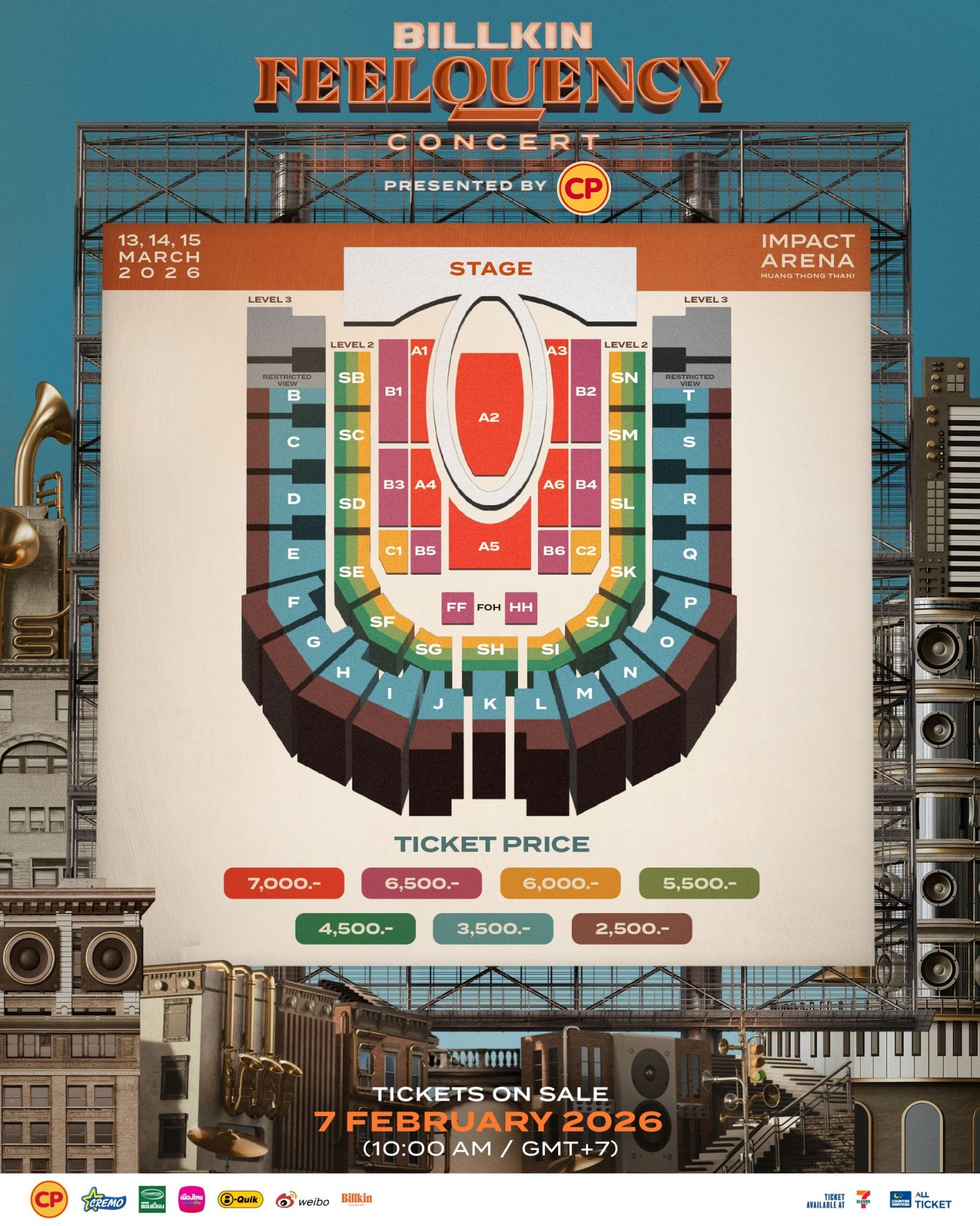 คอนเสิร์ตจัดขึ้นทั้งหมด 3 รอบการแสดง ในวันที่ 13, 14, 15 มีนาคม 2569 ณ อิมแพ็ค อารีน่า เมืองทองธานี ใครอยากเป็นหนึ่งในคนที่ได้อยู่ในโมเมนต์สำคัญครั้งนี้ต้องรีบเตรียมตัวให้พร้อม โดยจะเปิดขายบัตรในวันที่ 7 กุมภาพันธ์ 2569 ในเวลา 10:00 น. (GMT+7) – 12:00 น. (GMT+7) โดยจะเปิดจำหน่ายเฉพาะที่เคาน์เตอร์เซอร์วิสในร้าน 7-Eleven ทุกสาขาทั่วประเทศ จากนั้นเวลา 12:00 น. (GMT+7) จะเปิดจำหน่ายผ่านทั้งที่เคาน์เตอร์เซอร์วิส และ เว็บไซต์ www.allticket.com โดยบัตรมีราคา ดังนี้ 7,000 บาท / 6,500 บาท / 6,000 บาท / 5,500 บาท / 4,500บาท / 3,500 บาท / 2,500 บาท และบัตร Live Streaming 1,200 บาท สามารถติดตามรายละเอียดเพิ่มเติมได้ที่ Social Media : Billkin Entertainment งานนี้แฟนๆ เตรียมพร้อมกดบัตร แล้วไปเจอกันในคอนเสิร์ตที่อบอวลด้วยพลังเสียงเพลงและความรู้สึกแบบเต็มแม็กซ์ไปพร้อมกัน