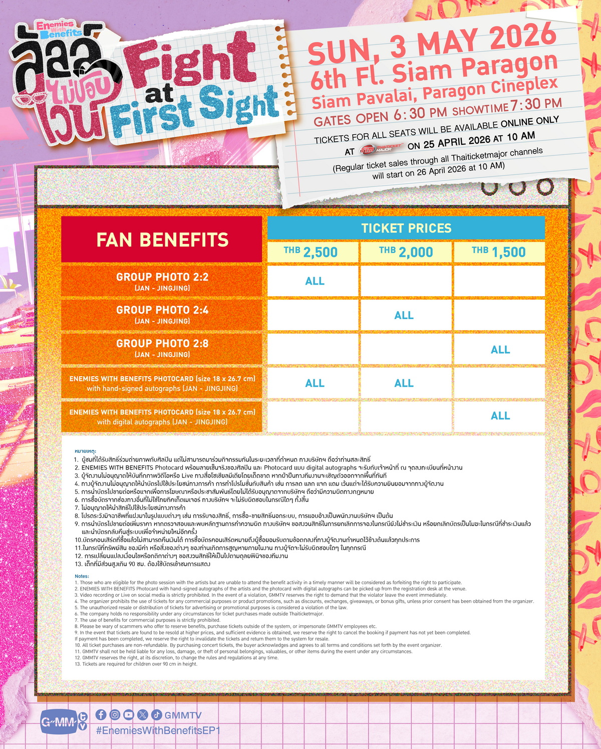 นับถอยหลังจากศัตรูกำลังจะเปลี่ยนเป็นคู่หูบนเตียง กับซีรีส์โรแมนติกคอมเมดี้หวานปนแซ่บ “ลัลล์ไม่ชอบไวน์ Enemies With Benefits” ต่อหน้าเถียงกันฉอด…กลับบ้านกอดกันฉ่ำ จาก “GMMTV” คอนเทนต์โพรไวเดอร์ชั้นนำของเมืองไทย ที่พร้อมให้แฟนๆ ลุ้นไปกับความสัมพันธ์ลับๆ ที่มีแค่ 2 คนที่รู้ กับฝีมือการแสดงของสองสาวฮอตคู่จิ้นคู่ใหม่เคมีพุ่งทะลุจอ “แจน พลอยชมพู ศุภทรัพย์” และ “จิงจิง ยู” ชวนแฟนๆ เปิดหมดเปลือกเรื่องรักเรื่องลับ รับชมตอนแรกพร้อมกัน ในงาน “ลัลล์ไม่ชอบไวน์ Fight at First Sight” ร่วมด้วย “ตะวัน จารุจินดา” ผู้กำกับซีรีส์ ที่จะมาร่วมพูดคุยถึงเบื้องหน้าเบื้องหลังการทำงานในกองถ่ายแบบเจาะลึกไม่มีกั๊ก และพิเศษสุดๆ กับสเปเชียลโชว์สุดเอ็กซ์คลูซีฟจากนักแสดง พร้อมเตรียมเสิร์ฟโมเมนต์เริ่ดๆ แซ่บๆ แบบSheทำถึงให้แฟนๆ อย่างจุใจ ในวันอาทิตย์ที่ 3 พฤษภาคม 2569 เวลา 19.30 น. ที่ ชั้น 6 สยามพารากอน โรงภาพยนตร์สยามภาวลัย Paragon Cineplex งานนี้บอกเลยว่าถ้าพลาดแล้วจะเสียดาย